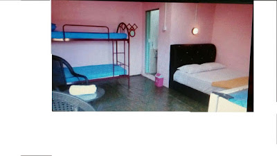 Kemudahan : Tandas, kipas, 2 katil Queen, 1 katil Single